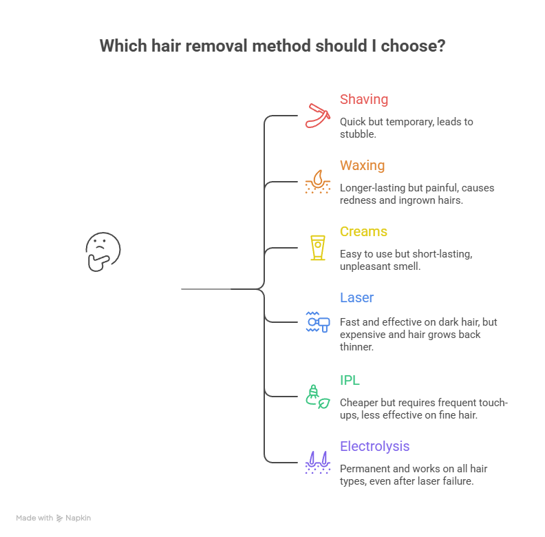 Then there’s laser and IPL, which sound great on paper. Laser shoots light at dark hairs on light skin, covering big spots like legs or backs in minutes. Sessions sting a bit, like a rubber band snap, and costs add up to around $1,600 for a full run, but hair grows back thinner over time, not gone.