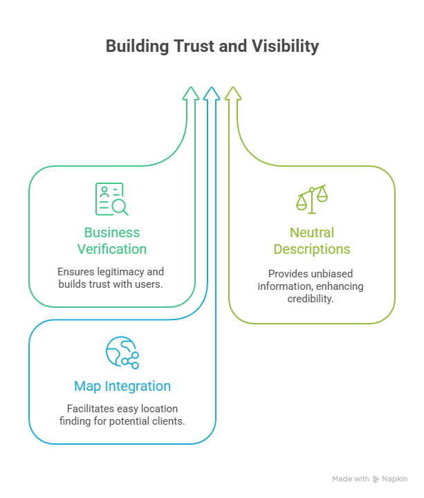 Directory listings make it happen. Think of them like business cards scattered where searches land. Google pulls from them for local rankings. Mess up your Name, Address, Phone (NAP) in one spot, and trust dips. Keep it straight across 50 solid directories, and you climb.