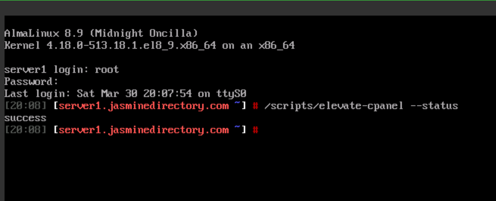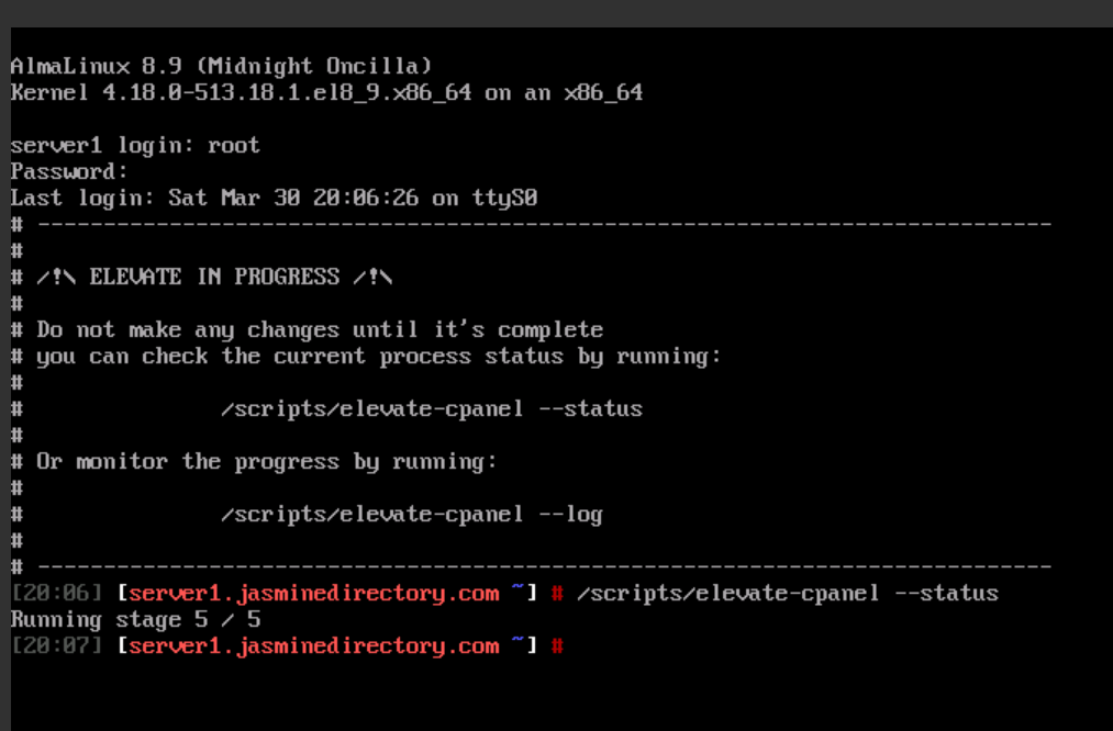 I patiently waited for about 45 minutes. The cPanel Elevate script resumed. Huh…