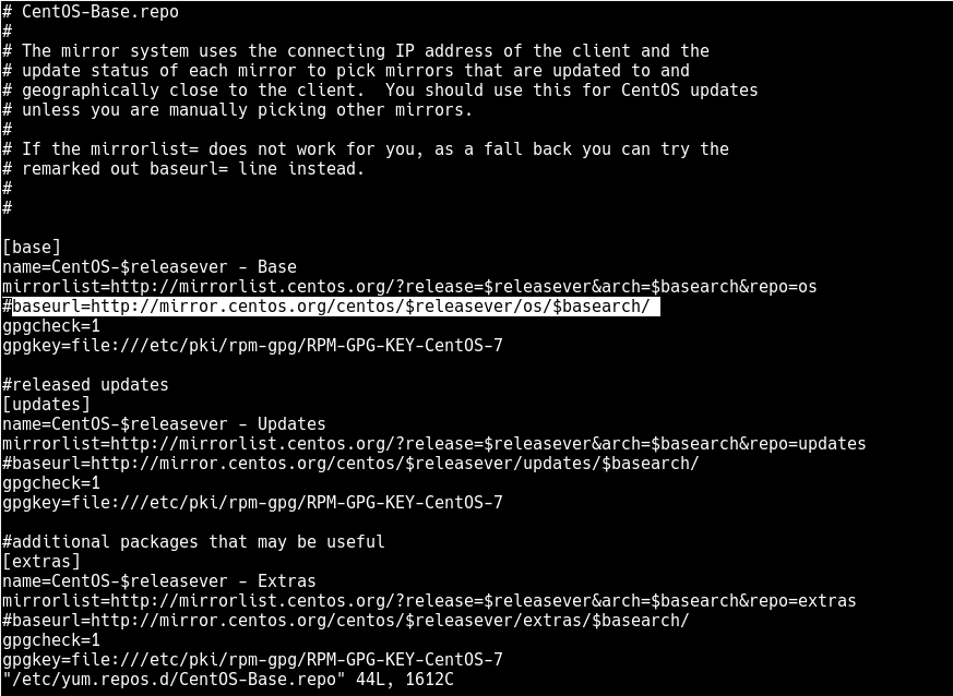 vi /etc/yum.repos.d/CentOS-Base.repo
