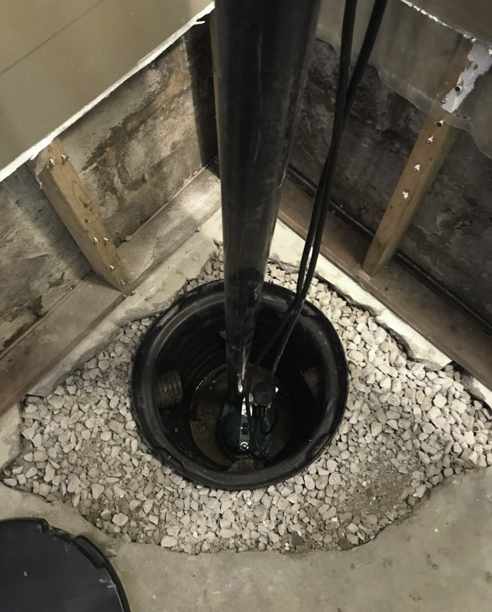 In Michigan, protecting a basement from water damage starts with ensuring the ground around your house slopes away from the foundation. This means the soil should drop at least 6 inches in the first 10 feet, so water from rain, melting snow, or gutters can run off instead of collecting against the walls. This helps reduce the pressure that water can put on your basement walls, especially in areas with clay soil, as we have here. To take it a step further, we use downspout extensions and buried lines to carry water from your roof far away from your house. Sometimes, this water is directed into an exterior French drain, which is basically a trench filled with gravel and a special pipe that catches groundwater before it reaches your house. The pipe is wrapped in geotextile fabric to prevent dirt and debris from clogging it. But even with all these precautions, some water might still seep into your basement through cracks or the joint where the wall meets the floor.