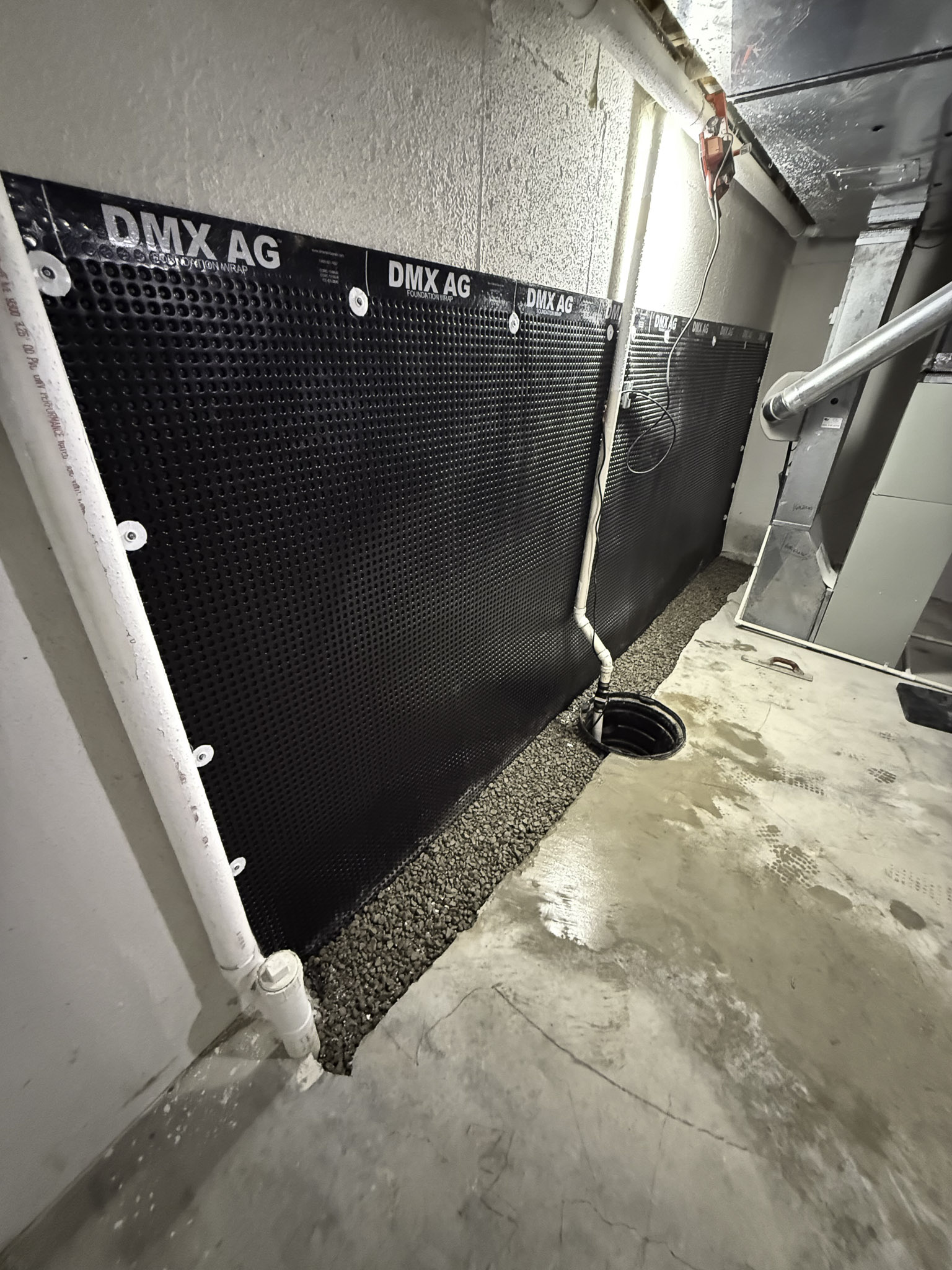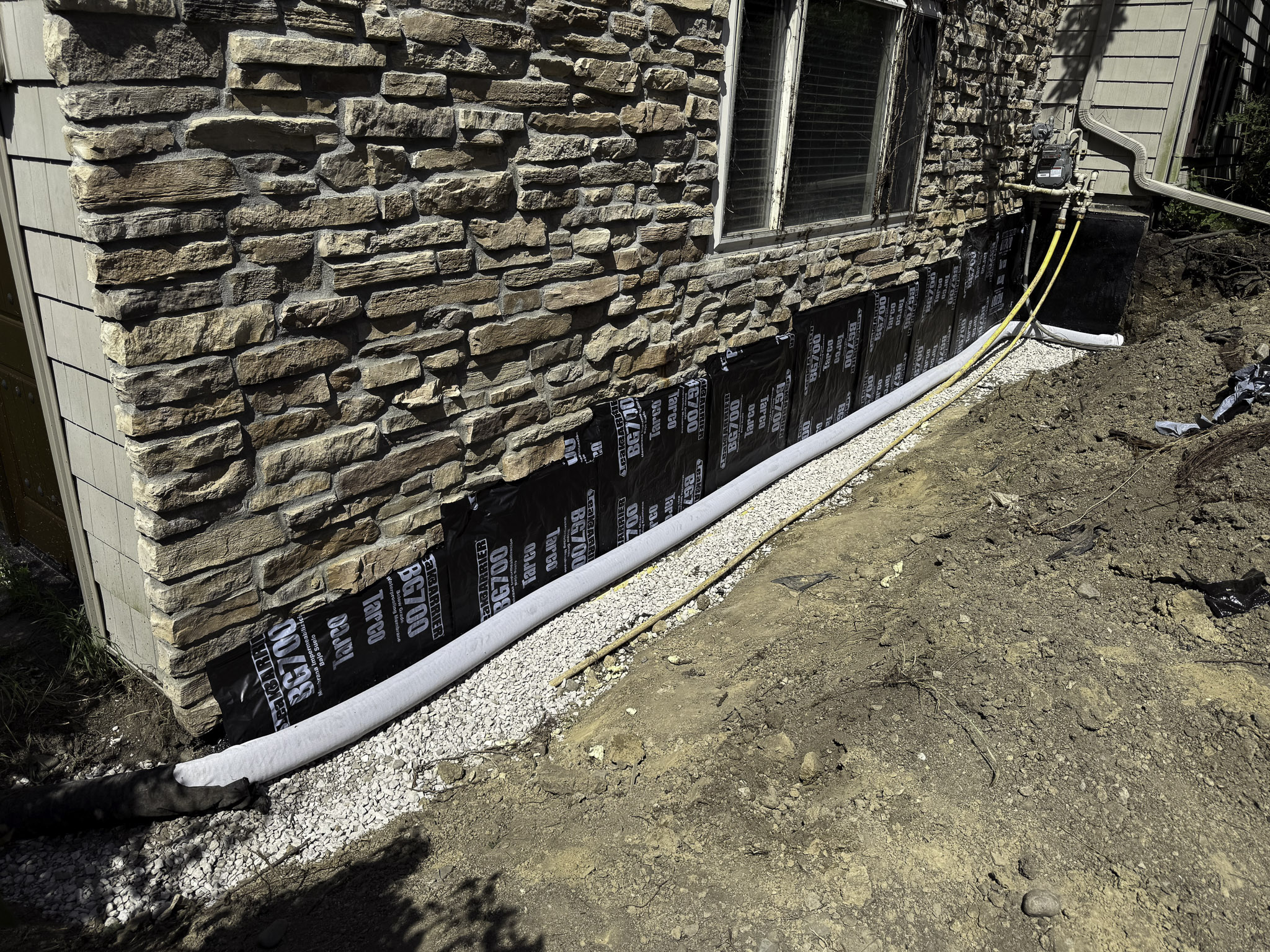 Mansour’s Innovations uses modern membrane systems, including rubber membranes and dimple board drainage layers, rather than older tar or bitumen coatings that degrade over time. These contemporary materials provide superior waterproofing performance and a significantly longer service life than the coatings that were standard when most of Michigan’s existing housing stock was built. The perimeter drainage tile installed during exterior waterproofing replaces the existing drain tile system, which in many Michigan homes has failed due to age, root intrusion, or ground displacement.