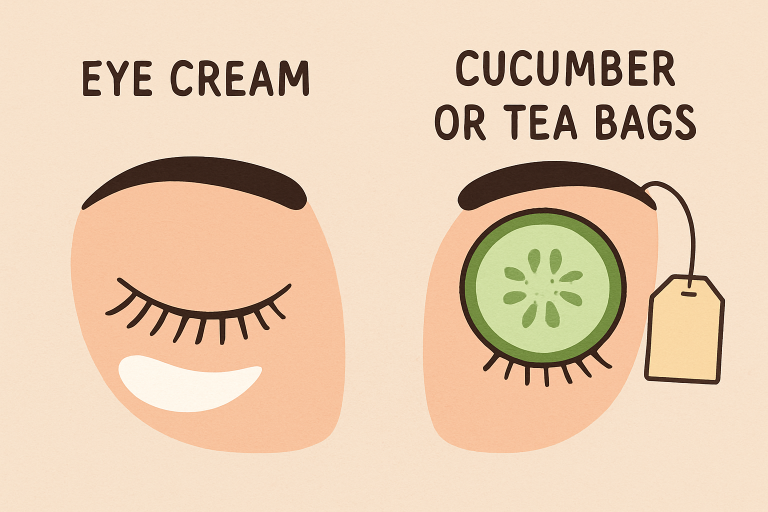 Apply Home Remedy: Whether you opt for a chilled tea bag, a cucumber slice, or nourishing oil, let it sit for 10–15 minutes. This gives the natural ingredients time to soothe and revitalize the under-eye area.