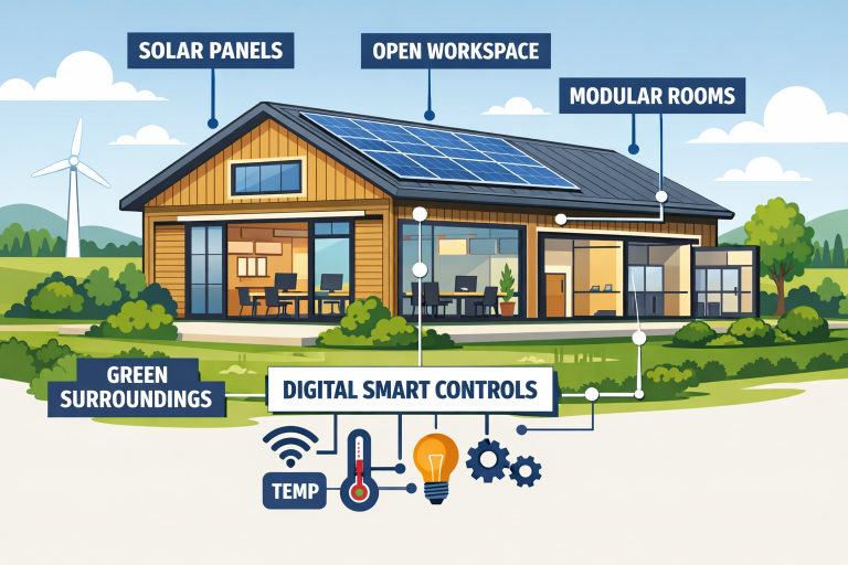Roll-up doors, movable dividers, and modular office pods are frequent features in these designs. Multi-functionality is not only about maximizing the value of a structure but also about future-proofing for changing requirements over time.