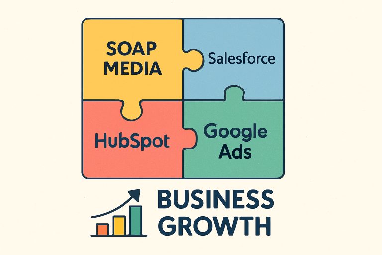 HubSpot puts all-in-one inbound marketing, sales, and customer service under a single, scalable roof. This is the system of choice for medium and large businesses automating their digital outreach and nurturing. HubSpot’s platform links seamlessly with both SOAP Media’s web marketing services and Salesforce’s CRM, enabling brands to deliver personalized journeys and measure success at every touchpoint.