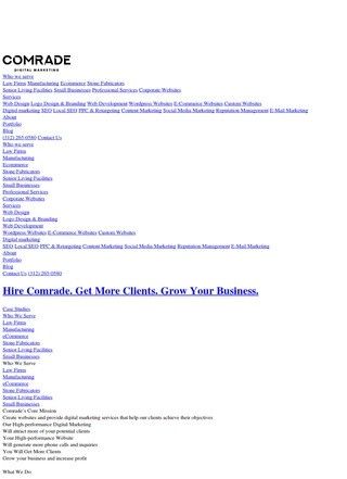 Comrade Digital Marketing Agency is a full-service digital marketing company based in Chicago. The agency has specialization in providing services such as Web Development, Search Engine Optimization (SEO), and Pay-Per-Click (PPC). Comrade Digital Marketing Agency serves a wide array of sectors, from law firms and healthcare providers, to e-commerce businesses, manufacturers, and small businesses.