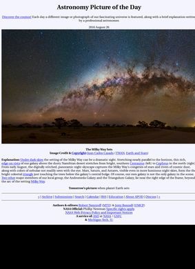 The Astronomy Picture of the Day is an engaging and knowledgeable platform that uniquely explores the mysteries of the universe. Each day, a new image or photograph is presented, depicting a striking scene from our vast cosmos. These visual presentations are accompanied by brief yet insightful clarifications penned by professional astronomers, making the platform a reliable source of astrophysical knowledge.