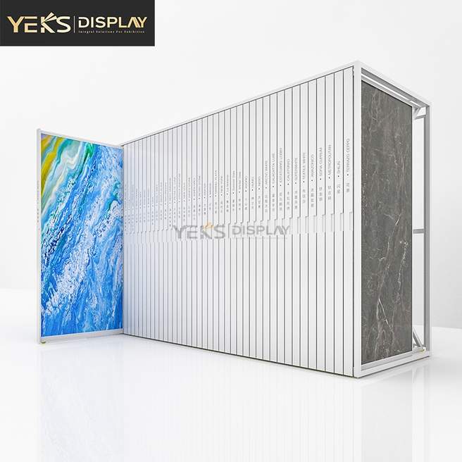 Among their tile display racks, customers can find push-pull tile displays, wall panel displays, simple tile display stands, tile cabinet displays, rotating displays, page-turning tile displays, tile display desks, and combination displays. For those looking for stone display racks, Yeksdisplay.com offers an array of designs suitable for various stones.